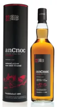 Gereifte überwiegend Ex-Bourbon-Fässern aus amerikanischer Eiche und in Ex-Sherry Butts aus spanischer Eiche, zeigt der AnCnoc 22 Jahre Single Malt Whisky ein große Komplexität und Fülle.