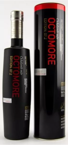 Bruichladdich Octomore 07.2 Islay Barley Single Malt Whisky ist mit einem Phenolgehalt von 208 ppm Torf einer der zur Zeit am stärksten getorfte Single Malt Whisky der Welt. Das für seine Herstellung verwendete Getriede wird ausschließlich auf der Insel Islay angebaut.